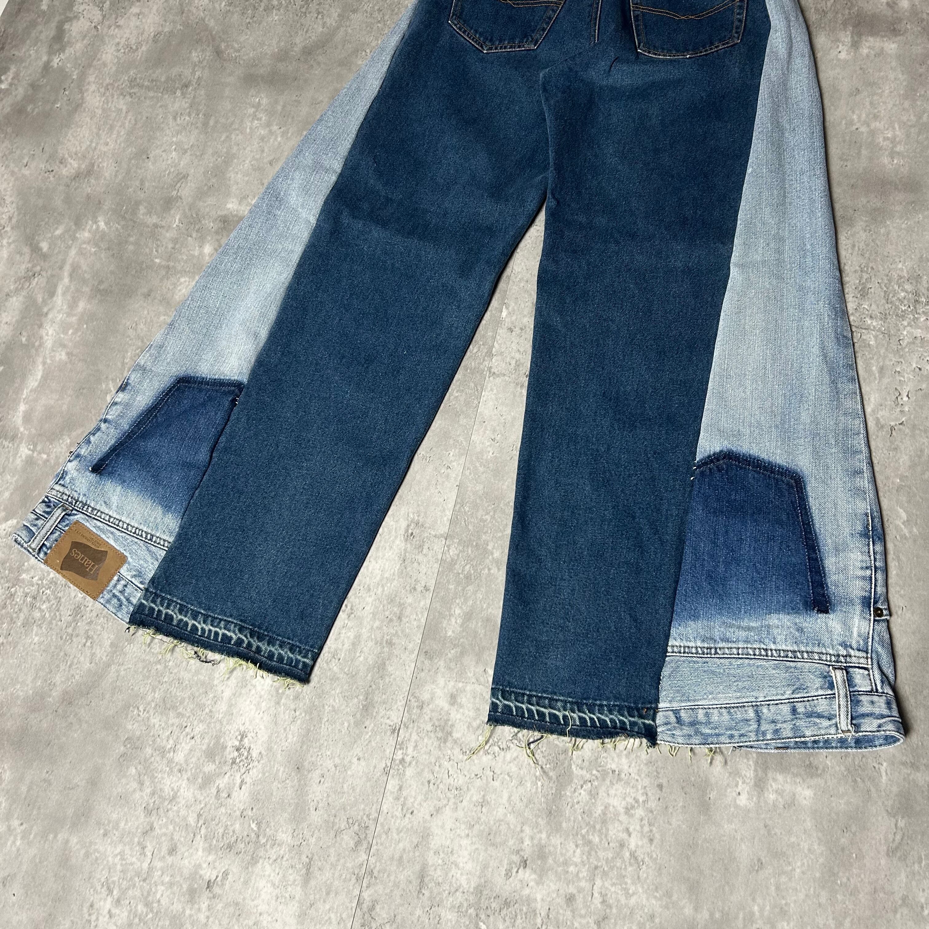 あなたのスタイルを一新するリメイクデニムジーンズ。 ワイドバギーデザインが、どんな体型にもフィットし、動きやすさとファッション性を両立させました。ユニークなディテールが施されたこのデニムは、他にはない独自の存在感を放ちます。カジュアルなアイテムとの組み合わせはもちろん、少しモードなスタイルにも簡単にアレンジ可能。毎日のコーディネートにおいて、挑戦的でありながら心地よい着心地が楽しめます。各アイテムには個性的な風合いがあり、あなた自身の物語を映し出す一着となるでしょう。