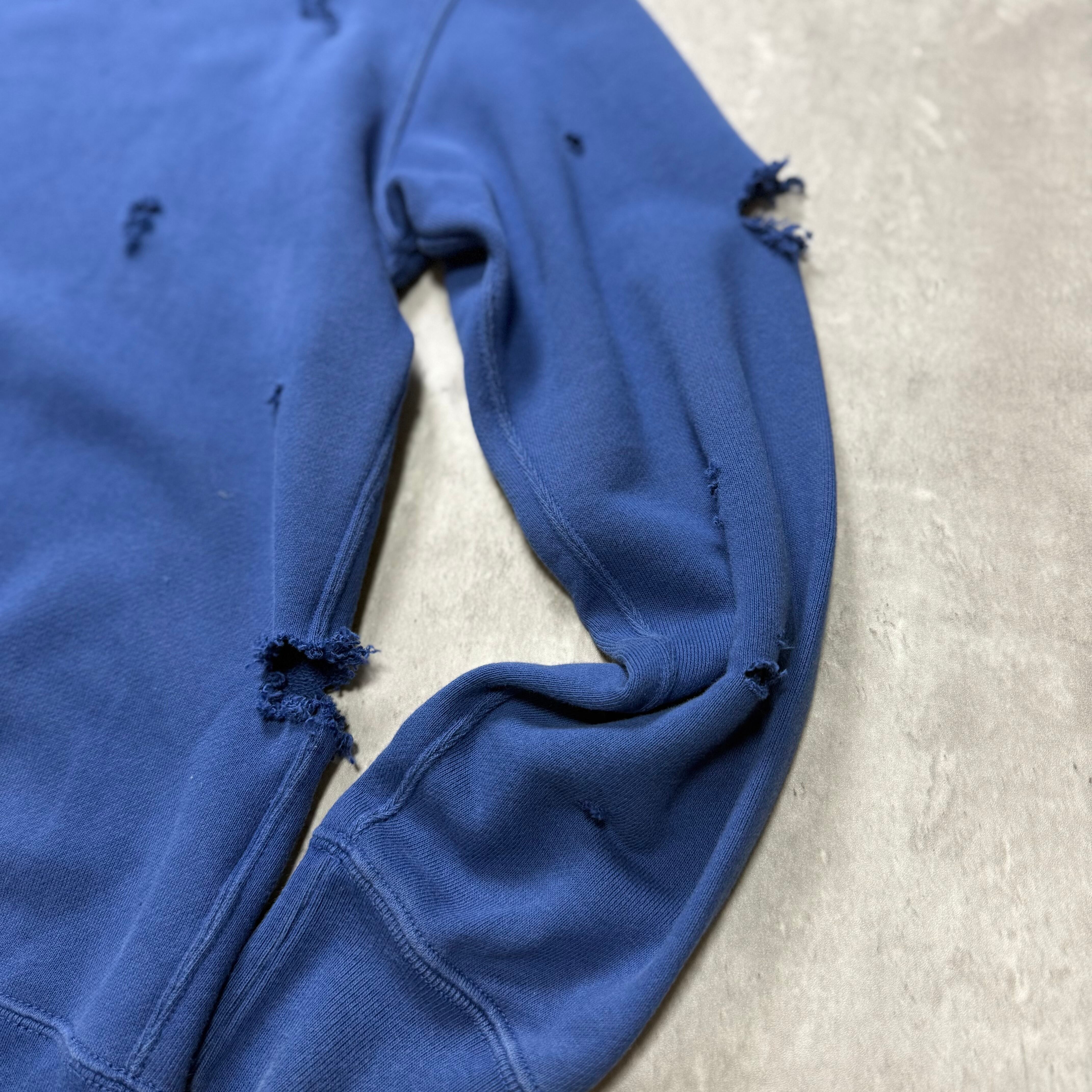 くすみブルーのダメージ加工が施されたスウェットトレーナー「Remake Damage Tops」が新登場!Y2K感満載の可愛いデザインは、カジュアルスタイルにぴったりで、あなたの個性を際立たせます。ゆったりとしたシルエットが快適な着心地を提供し、リラックスした日常使いから、友達とのお出かけまで幅広く活躍すること間違いなし!ダメージ加工が施された風合いが、一枚で存在感を放つアイテムとなります。ぜひこのトレーナーで、自分らしいスタイルを楽しんでください!