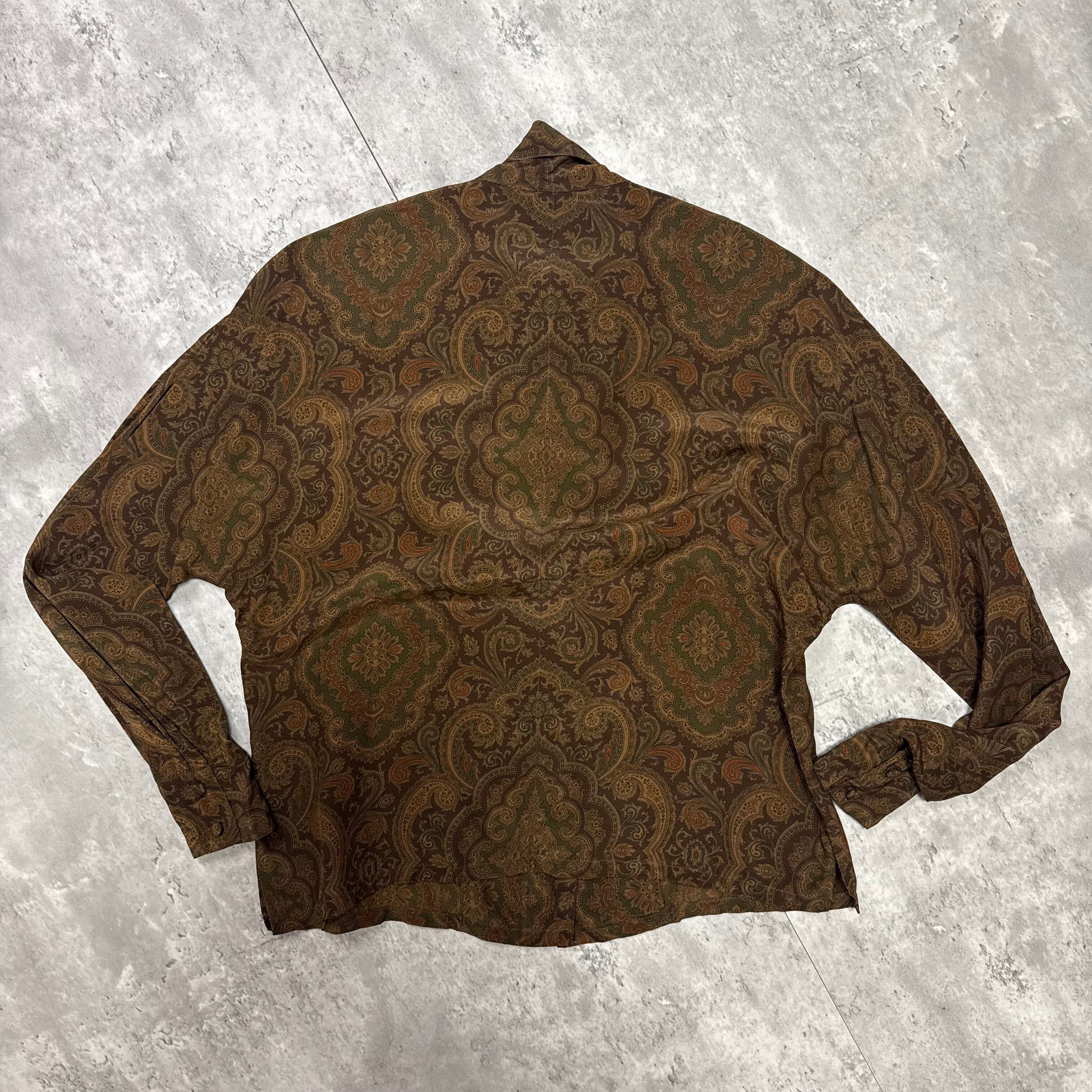 エレガントなペイズリー柄が目を惹く長袖シャツブラウス「長袖 シャツブラウス ペイズリー 総柄 幾何学柄 ブラウン」が新登場!独自の幾何学柄が施されたデザインが、シンプルながらも個性を引き立てます。柔らかなポリエステル素材は、肌触りが良く快適な着心地を実現。カジュアルからフォーマルまで幅広く活躍し、様々なボトムスとも合わせやすいのが魅力です。このシャツブラウスを取り入れて、洗練されたスタイルを楽しんでください!